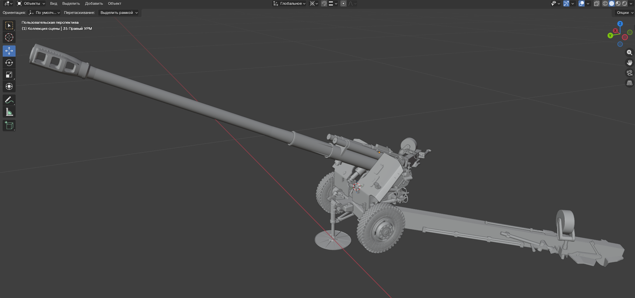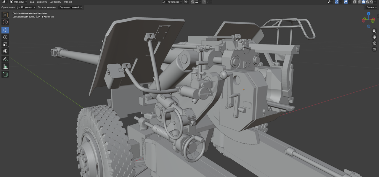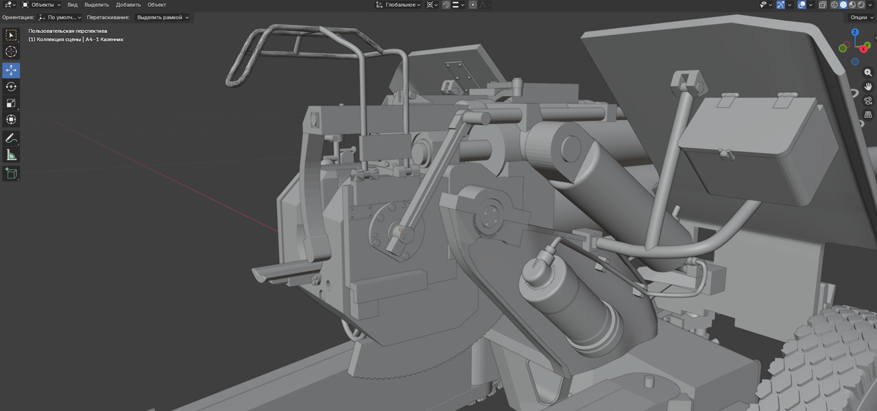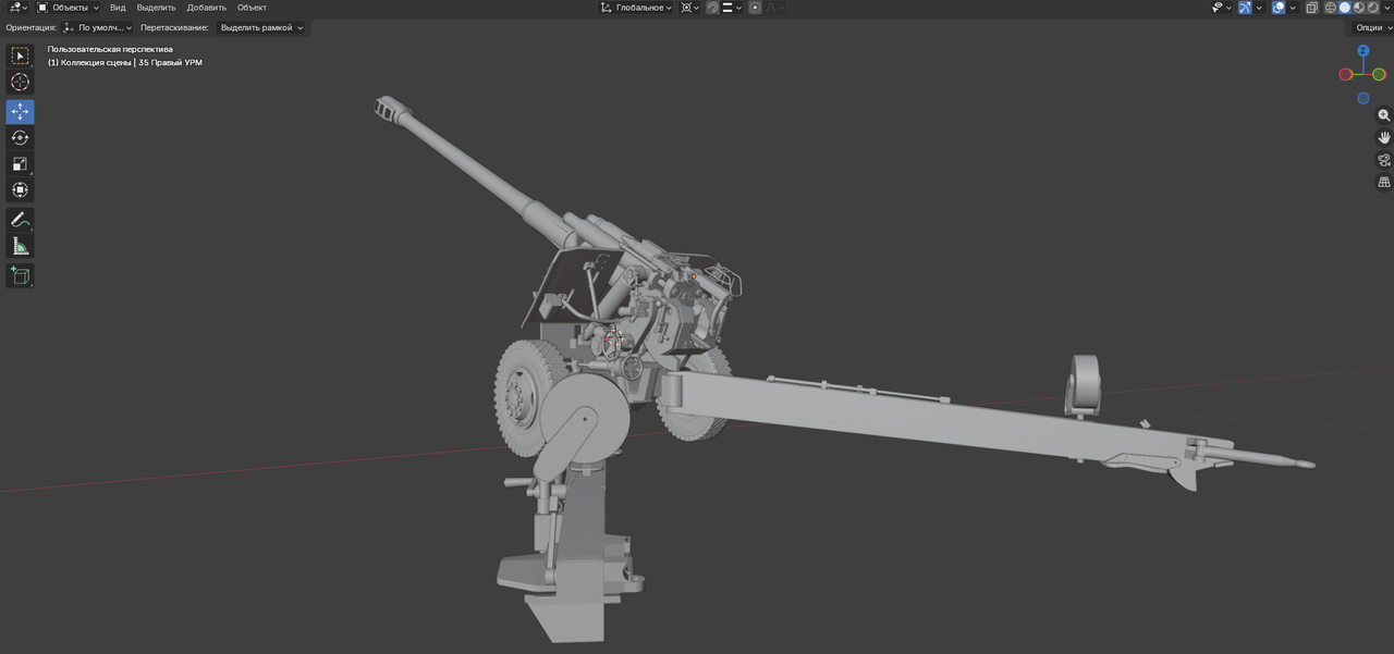 Доделал механизмы горизонтальной и вертикальной наводки, механизм горизонтальной наводки будет подвижным, то есть при отклонении орудия влево/вправо вал механизма будет поворачиваться как у реального.